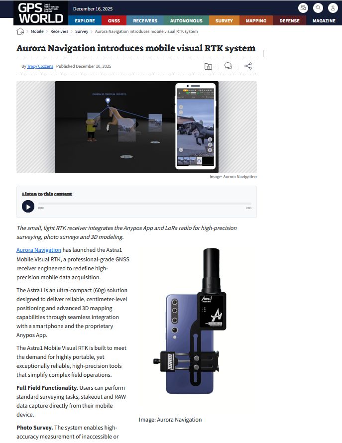 Aurora Navigation is a Canadian high-tech company founded in Calgary by two PhDs. Our team dedicate to deliver innovative high-precision, low-cost GNSS solutions to engineers, researchers, and field professionals around the world. We believe that centimeter-level positioning should be accessible, reliable, and easy to use.